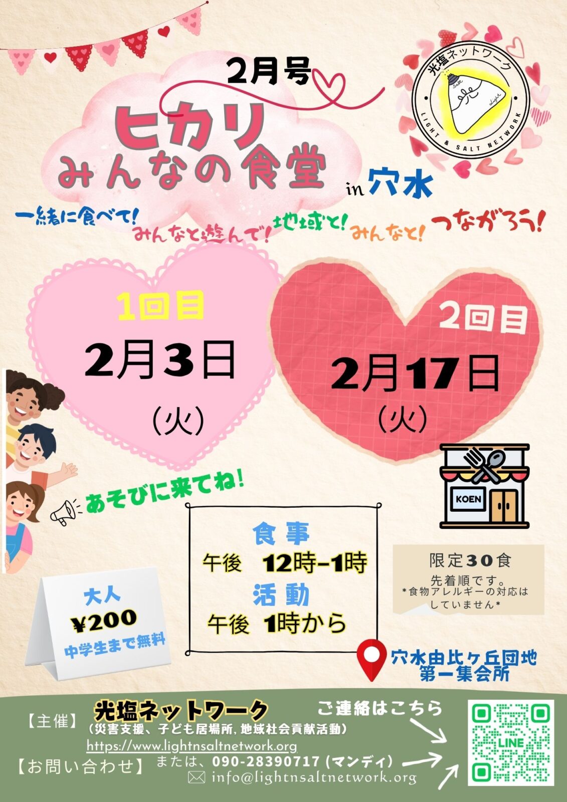穴水ヒカリ食堂 2025 12/01 お知らせ お知らせ 鵠巣ヒカリ食堂 金沢ヒカリ食堂 関連記事 金沢ヒカリ食堂 2026年1月26日 鵠巣ヒカリ食堂 2022年5月13日 大屋ヒカリ食堂 2022年5月13日